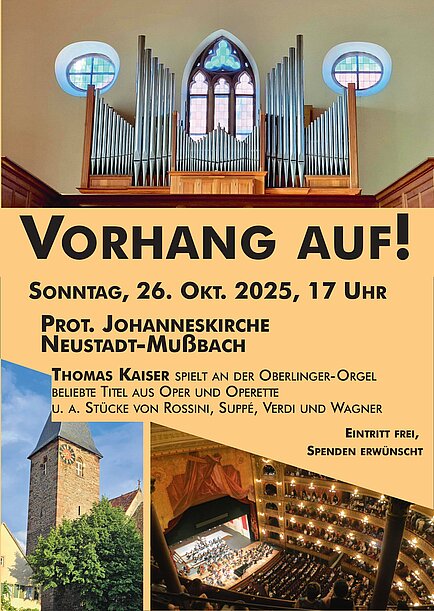Mußbach ein Orgelkonzert mit beliebten Titeln aus Oper und Operette. Der Eintritt ist frei, Spenden